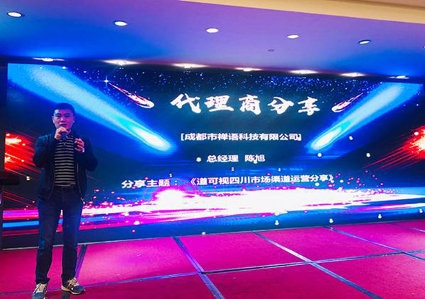 ▲道可視代理商——成都市禪語科技有限公司總經(jīng)理陳旭先生發(fā)表主題演講《道可視四川市場渠道運營分享》