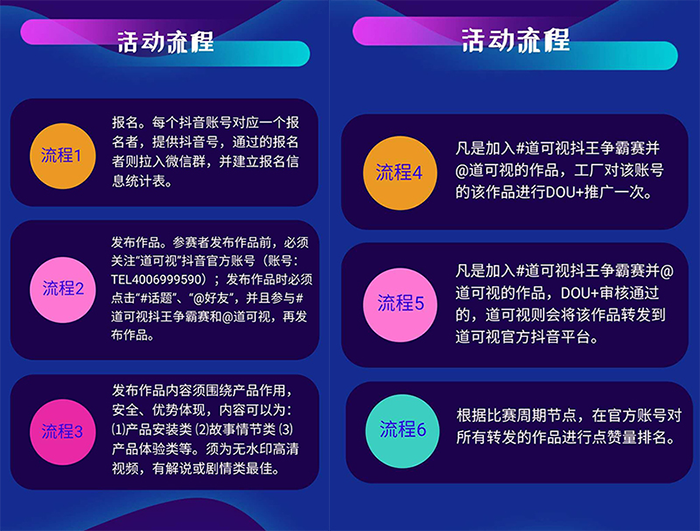 流程4:凡是加入#道可視抖王爭(zhēng)霸賽并@道可視的作品,工廠對(duì)該賬號(hào)的該作品進(jìn)行DOU+推廣一次。